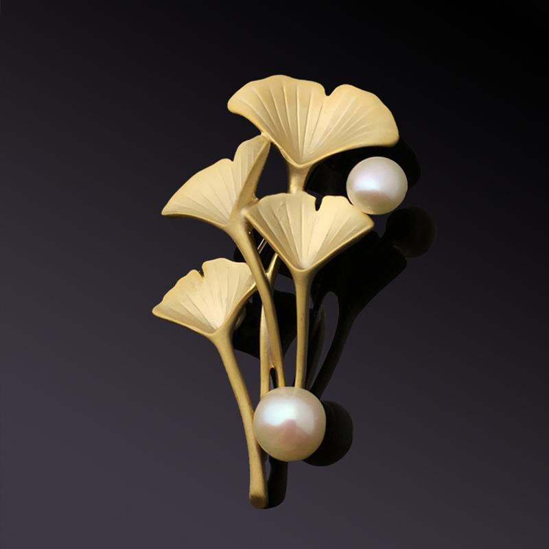 Мода Гинкго Билоба Винтаж Золотой Цвет Брошь Булавки Кристаллы Жемчужина Цветок Броши Для Свадебной Вечеринки Ювелирные Изделия