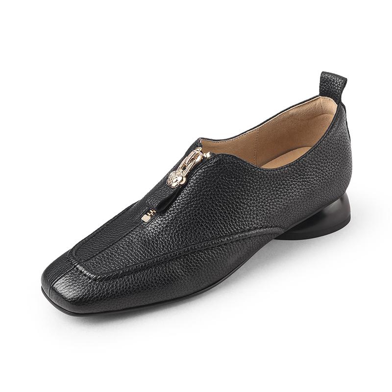 Мода НОВЫЕ Весенне-Осенние Женские Туфли Квадратный Носок Массивный Каблук Обувь Натуральная Кожаная Обувь для Женщин Лаконичная Молния Ручная Работа Черная Обувь 41 чёрный