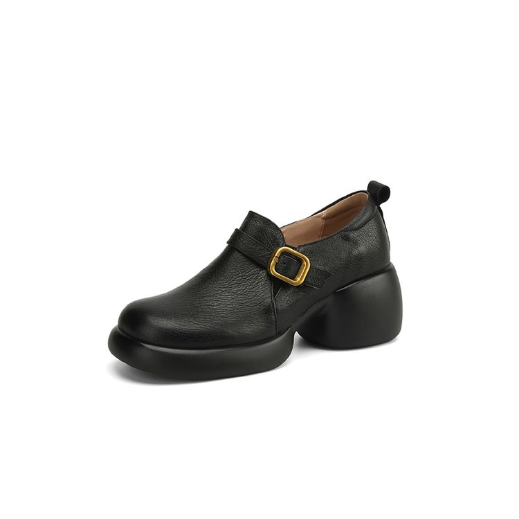 Мода НОВЫЕ Весенне-Осенние Женские Туфли Лодочки Круглый Носок Массивный Каблук Обувь из Натуральной Кожи для Женщин Лаконичная Пряжка на Ремне Молния Обувь на Платформе 42 чёрный
