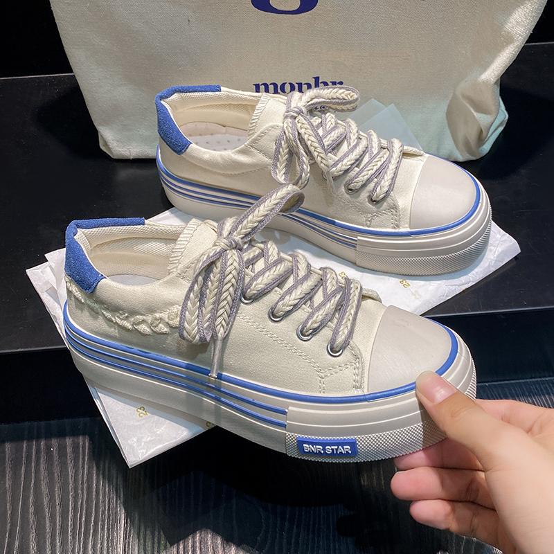 Мода Новые женские туфли на платформе из парусины, увеличивающие рост, толстые кроссовки для девушек, уличные кроссовки, женская обувь на толстой подошве 40 синий