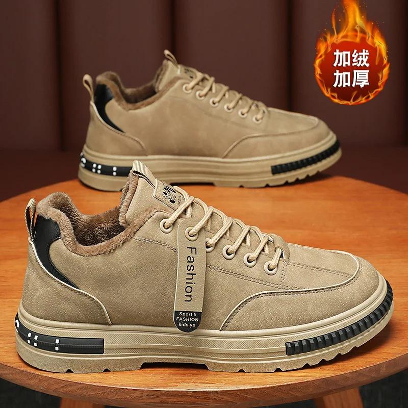 Мода Новые мужские зимние кроссовки Мужские модные ботинки на платформе Уличная теплая рабочая обувь Мужская нескользящая походная обувь Универсальная хлопковая обувь 44