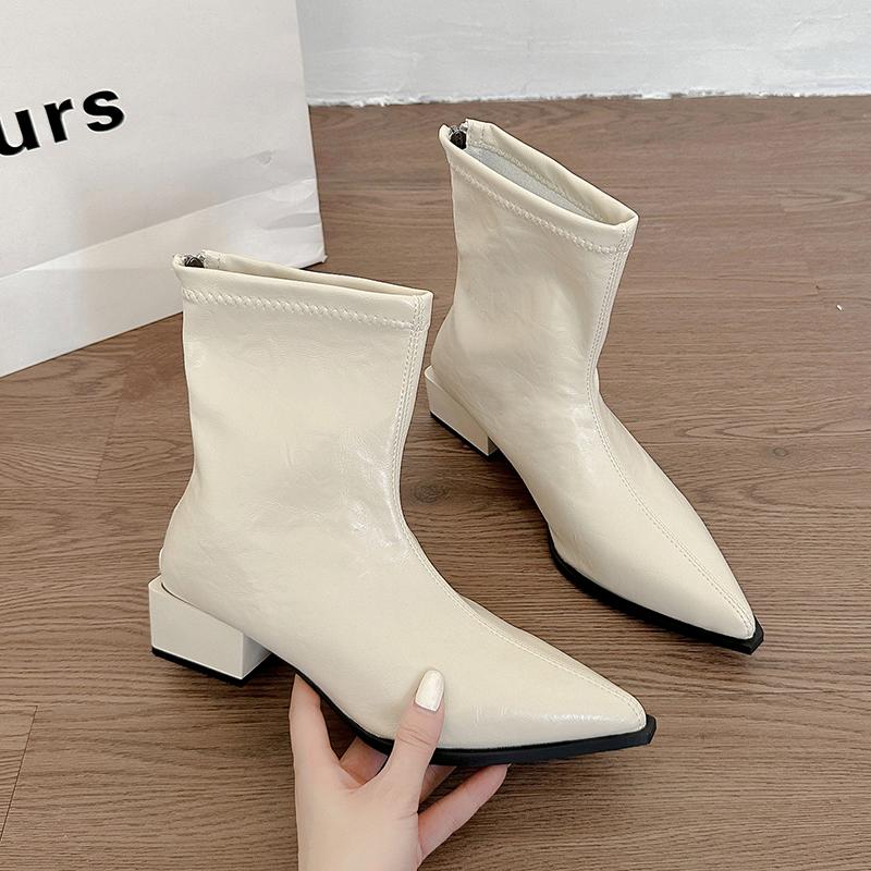 Мода Осень Зима Острый Носок Женские Ботильоны на Толстом Каблуке Уличный Стиль Вечеринка Эластичные Облегающие Короткие Ботильоны Женские 35 бежевый