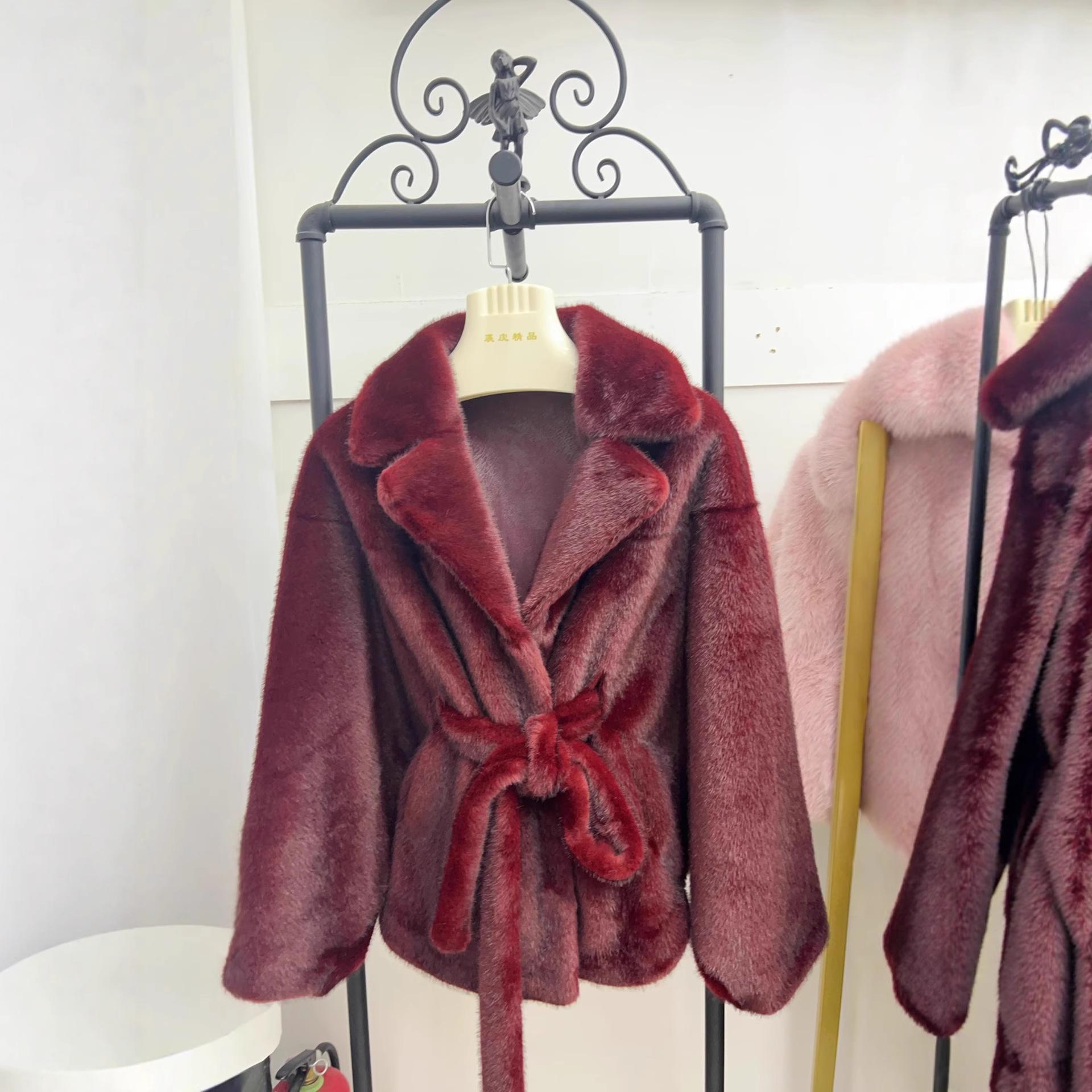 Мода Осень/Зима 2025 Женская одежда Имитация кроличьего меха Леопардовый принт Мех Женское пальто Плюшевая одежда one size fits all бордовый