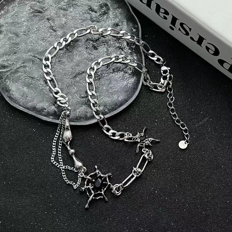Мода Панк Темный Стиль Паук Черный Циркон Подвеска Ожерелье Нейтральный Креативный Серебристый Цвет Кисточка Ключичная Цепочка Ювелирное Изделие Подарок серебряный