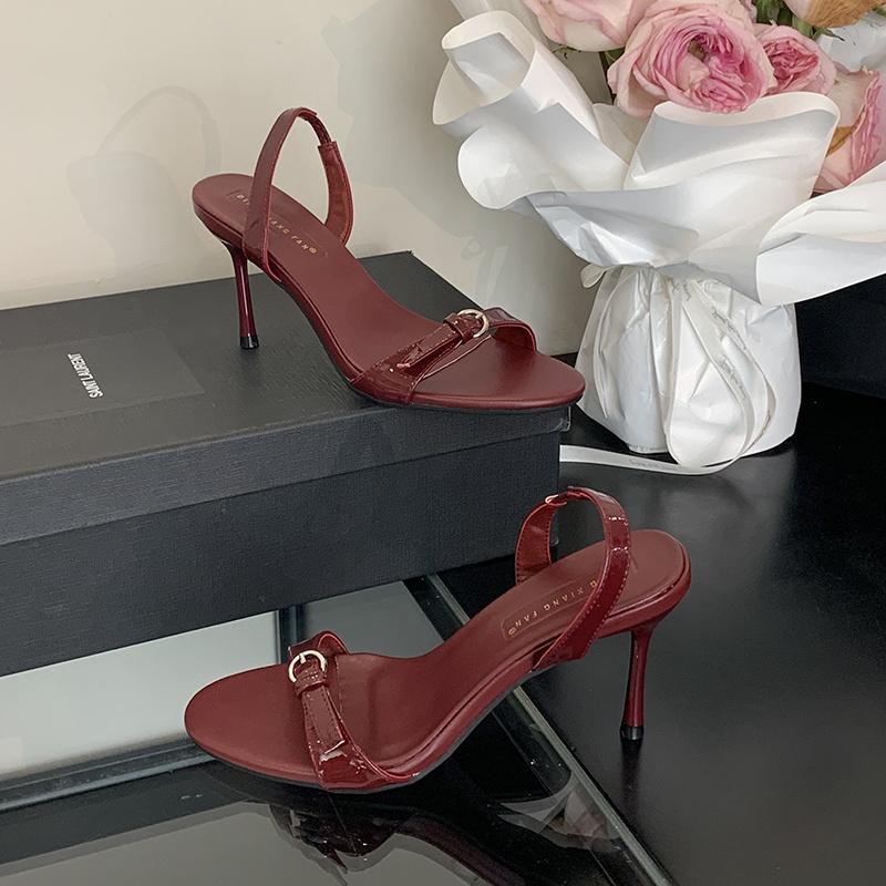 Мода Танцуем Женские Босоножки на Высоком Каблуке Обувь Женская Круглый Носок Ремешок с Пряжкой на Щиколотке Обувь Мода Металлические Женские Туфли-Лодочки на Каблуке Красная Обувь 40 красный