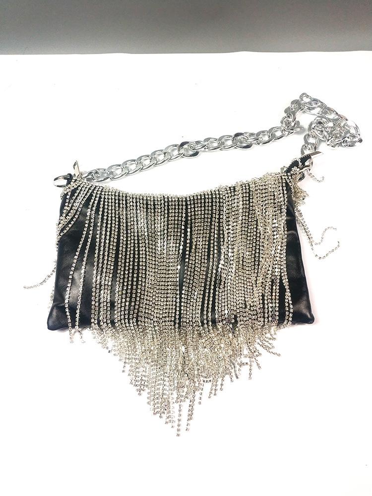 Мода, борода из бриллиантов ручной работы, ожерелье в форме луны, кожаная женская сумка, тяжелая металлическая новая сумка через плечо чёрный