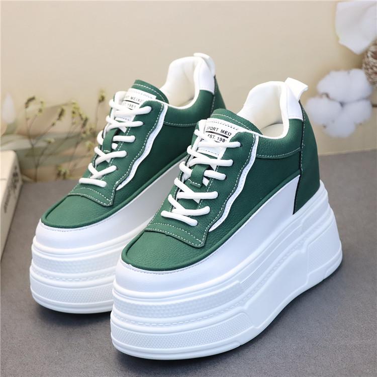 Мода 12 см Синтетическая Натуральная Кожа Белый Роскошный Дизайнерский Кроссовок Женский Осень Весна Ковбойская Платформа Клиновидная Высокая Брендовая Обувь 34 зелёный