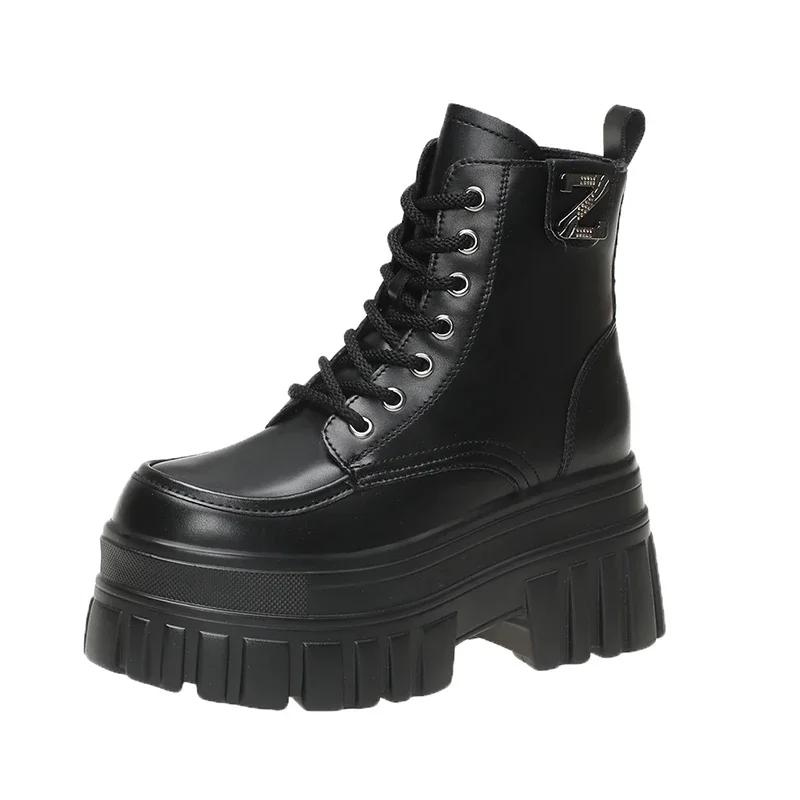 Мода 2024 Весна Осень Британский Стиль Ретро Черные Ботильоны для Женщин Новая Платформа Толстый Каблук Короткие Ботинки Высокий Каблук Женская Обувь 34 чёрный