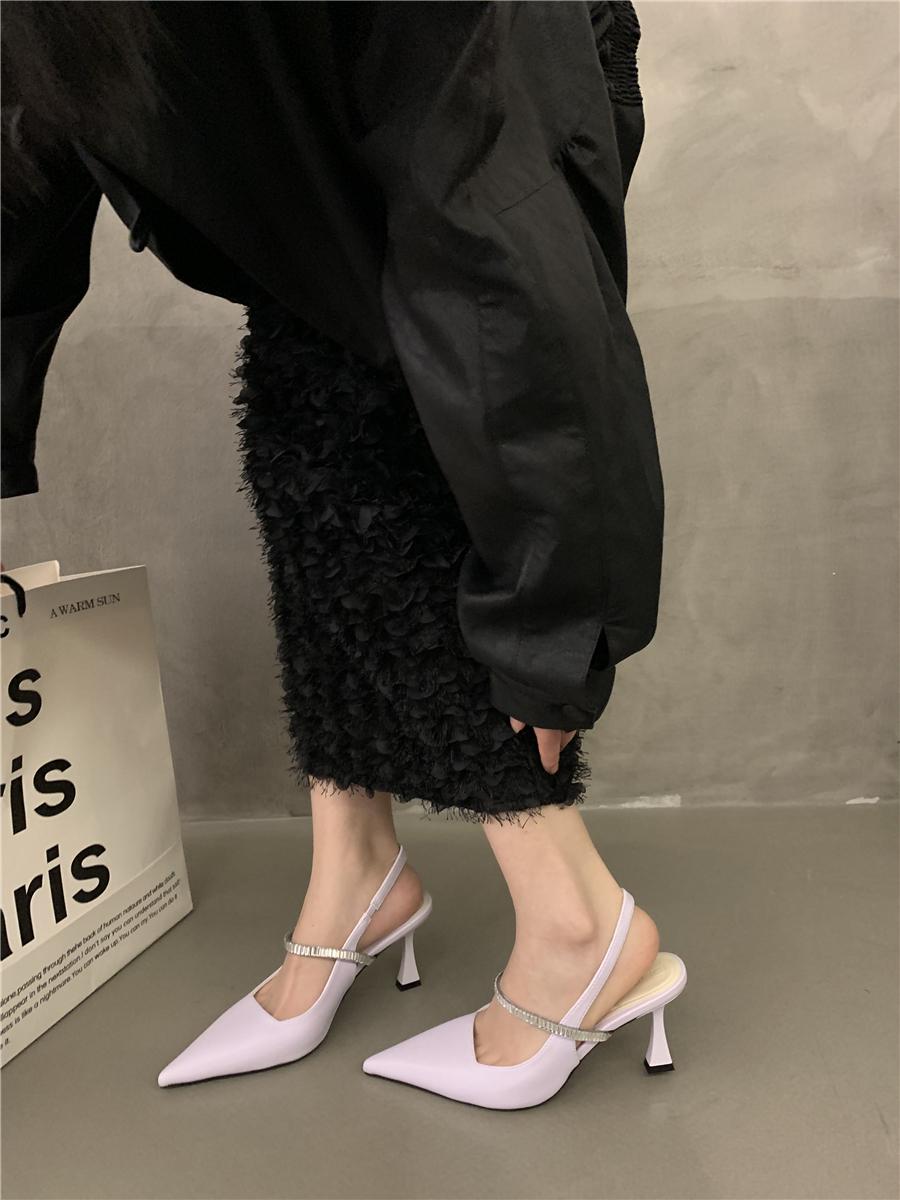 Мода 2024 Весна и Осень Женские Босоножки На Высоком Каблуке Новые Универсальные Тонкие Каблуки Модные Остроконечные Черные Пряжки Ремешок Одиночные Туфли Женские 39 абрикосовый