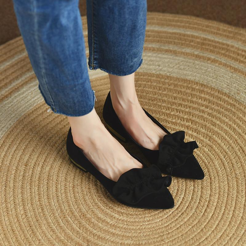 Мода 2024 Весна и Осень Новая Модная Верхняя Одежда Из Замши С Острым Носком Женская Обувь С Небольшим Носком Удобные Туфли На Высоком Каблуке Одиночные Туфли 40 чёрный