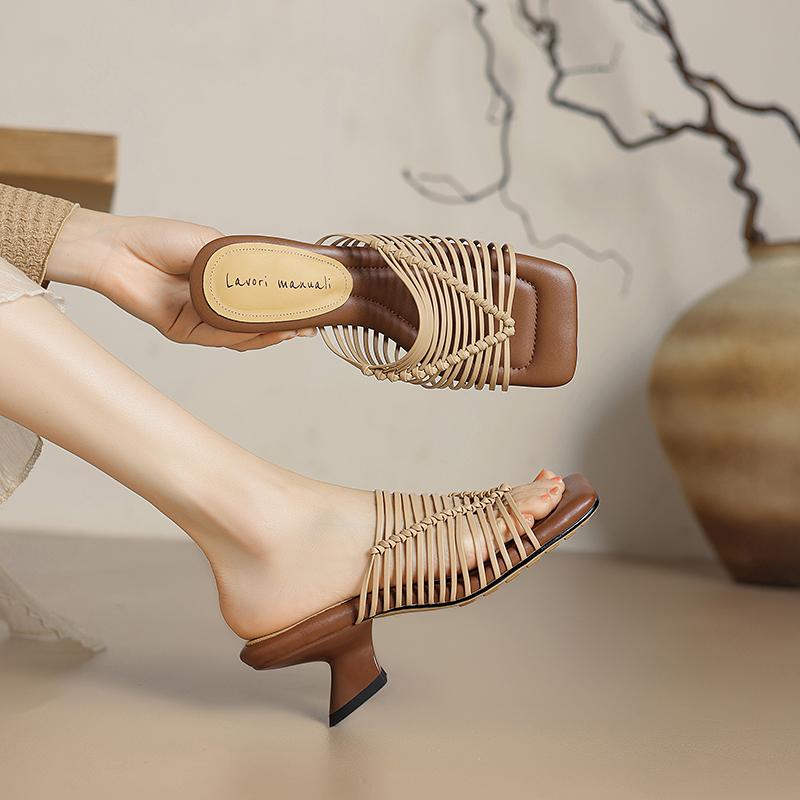 Мода 2024 Лето Женские Шлепанцы Мюли Женская Обувь Открытый Носок Туфли на Высоком Каблуке Слингбэк Современные Сандалии Обувь Гладиаторы 40 абрикосовый