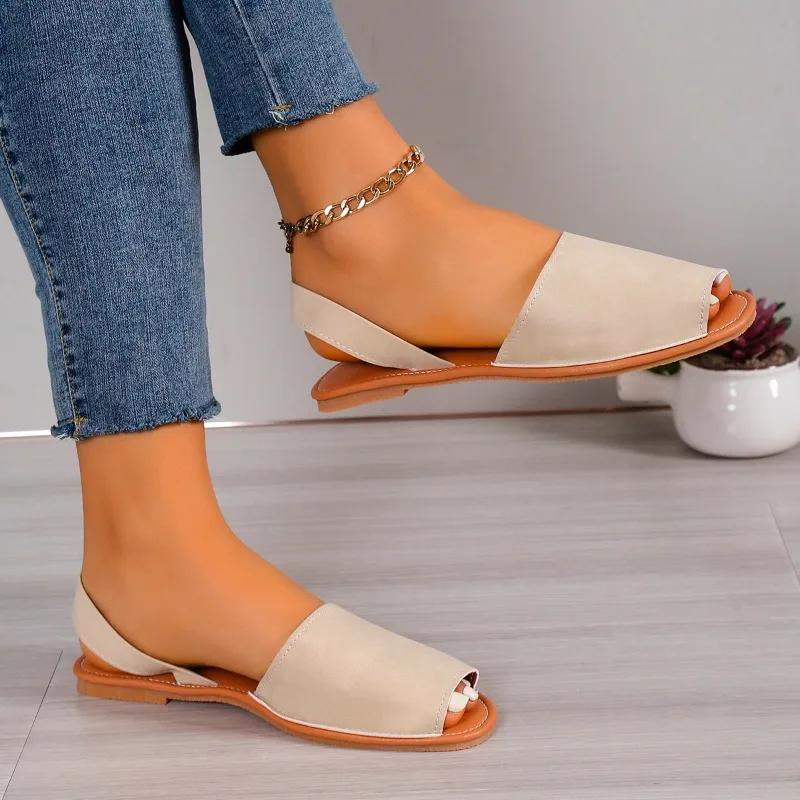 Мода 2024 Лето Новый Стиль Женские Сандалии Уличные Однотонные Открытые Носки Низкий Каблук Однотонные Небольшие Кольцевые Женские Сандалии 43 белый