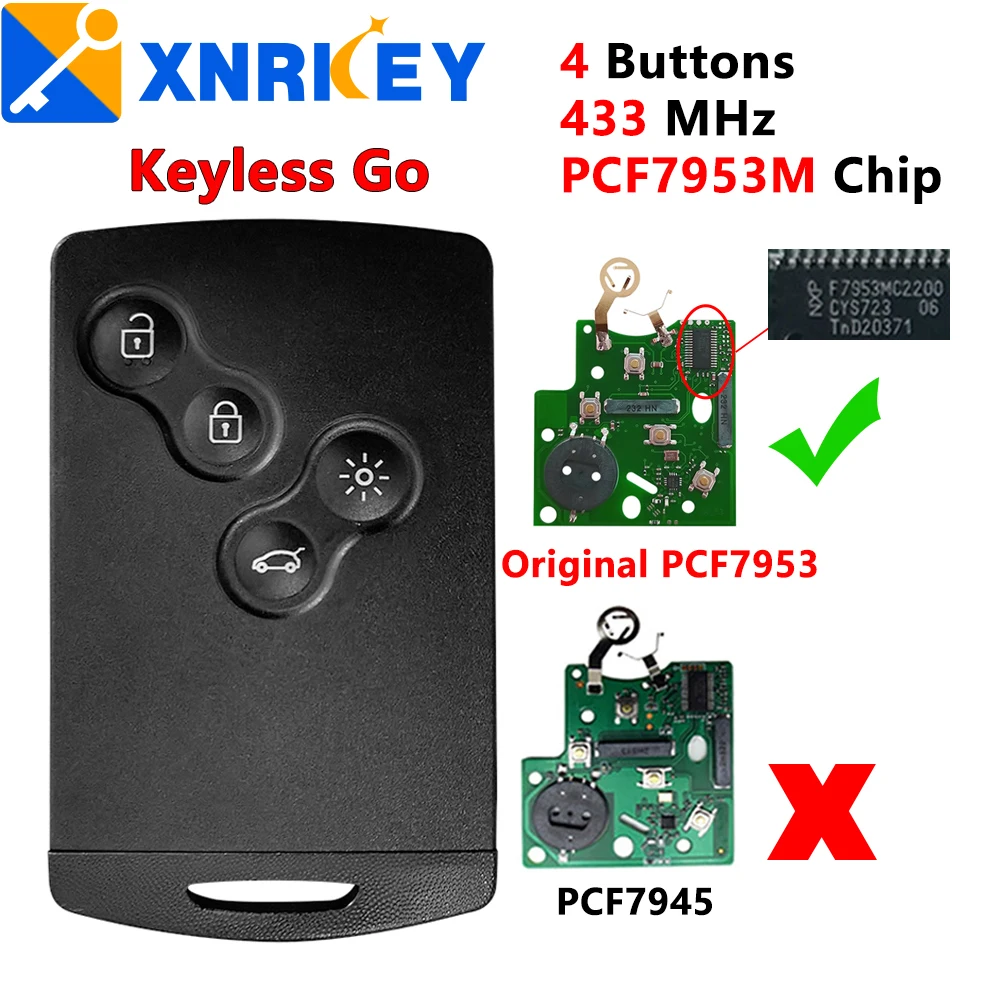 XNRKEY 4B Smart Card Car Key PCF7953/4A Chip 433Mhz for Renault Clio 4 Captur Passive Keyless Go Entry Remote HandsFree System