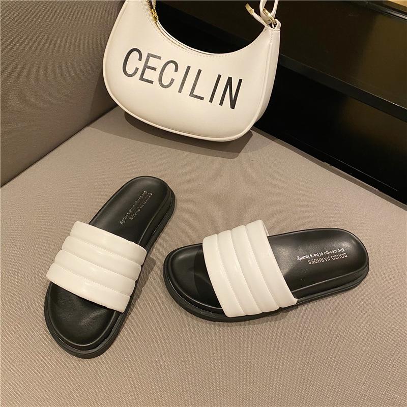 Мода 2024 Слипперы с цветными блоками Женские зеленые сандалии Слайды на платформе Женские полосатые кожаные туфли Толстая подошва Шлепанцы Лоферы 5 белый