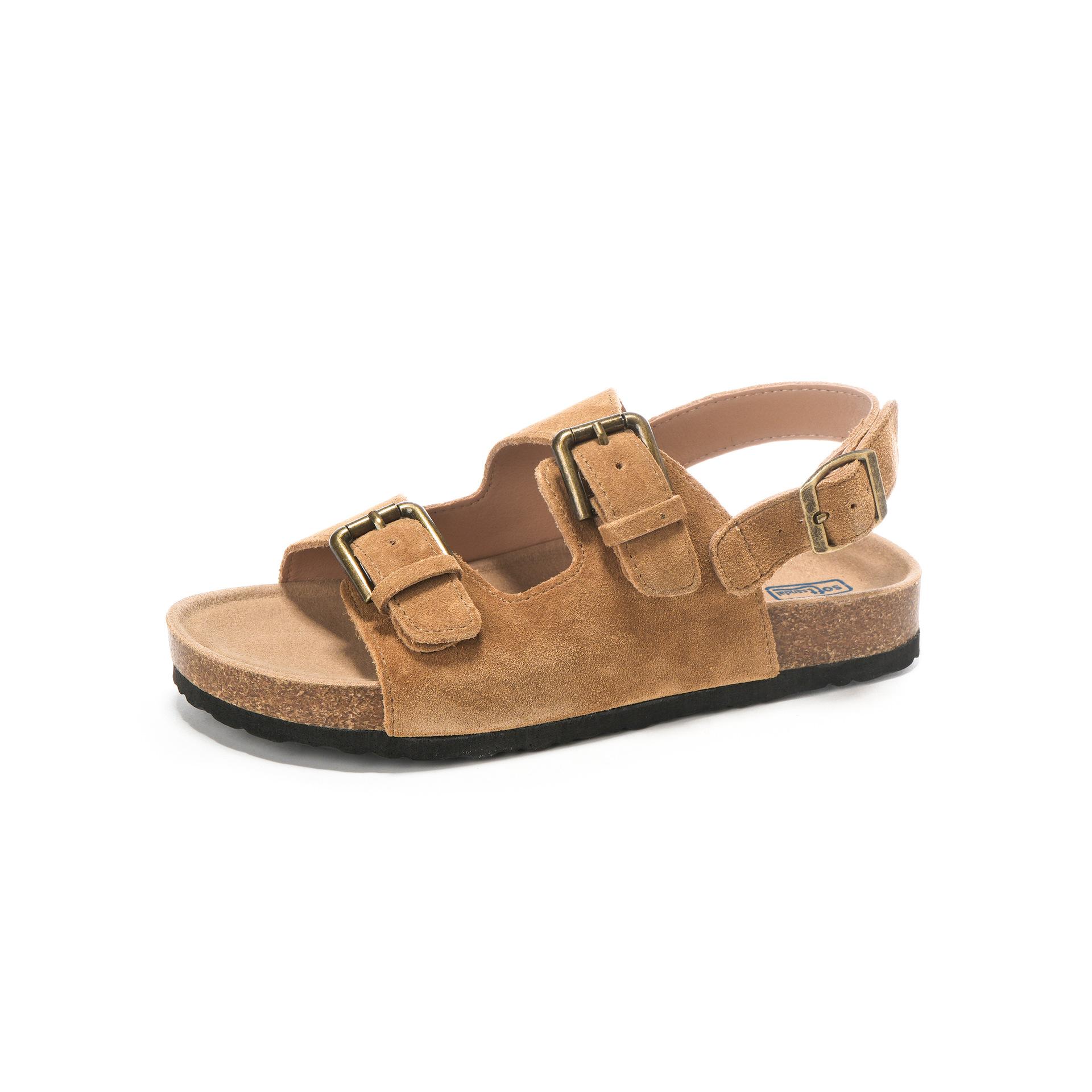 Мода 2024 года, летние женские сандалии из пробки с двумя пряжками, сандалии из коровьей замши на плоской подошве для женщин, модные туфли-сабо в стиле ретро для сада 41 коричневый