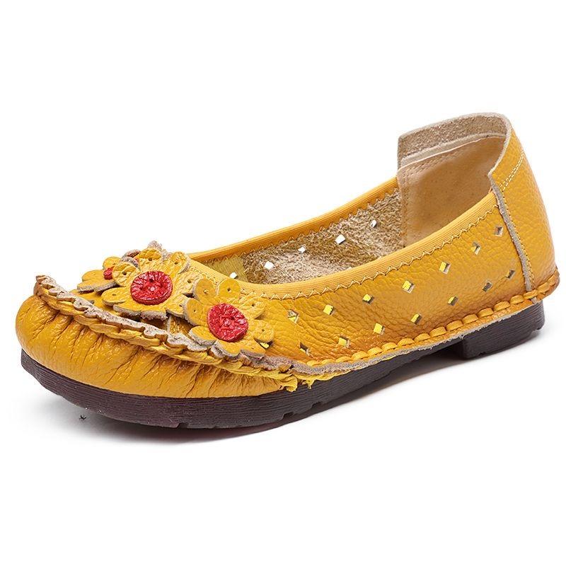Мода 2025 Весна Лето Обувь из Натуральной Кожи Женская Обувь на Плоской Подошве Цветы Мягкая Плоская Обувь из Коровьей Кожи Черная Белая Желтая Красная Большой Размер 41 D418 41 жёлтый