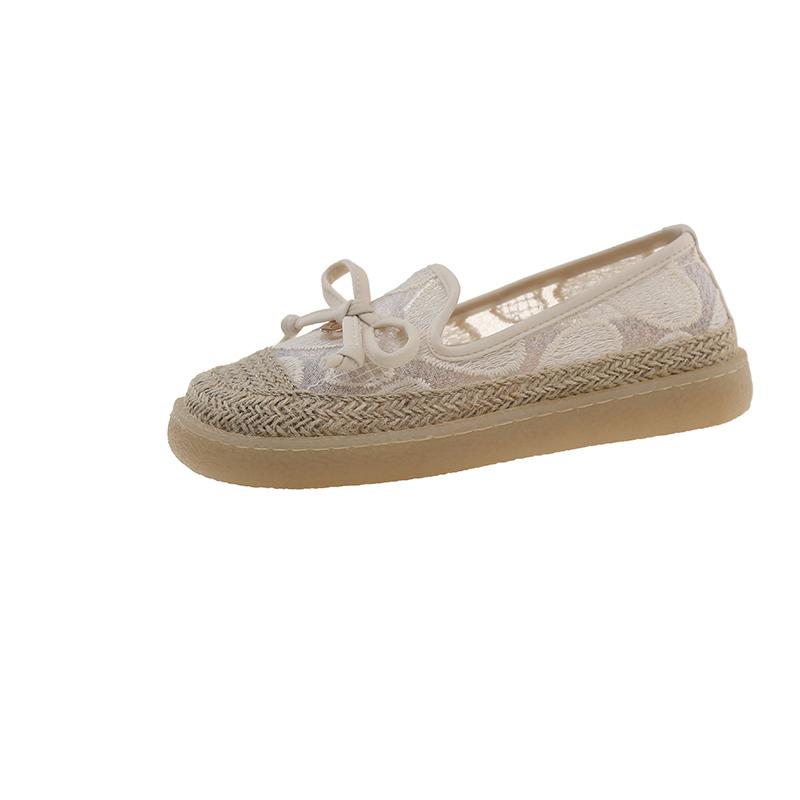 Мода 2025 Горячий Продавец Дышащая Сетка Плоская Подошва Рыбацкая Обувь Женская Повседневная Обувь Слипоны Весна Лето Обувь для Отдыха 40 бежевый