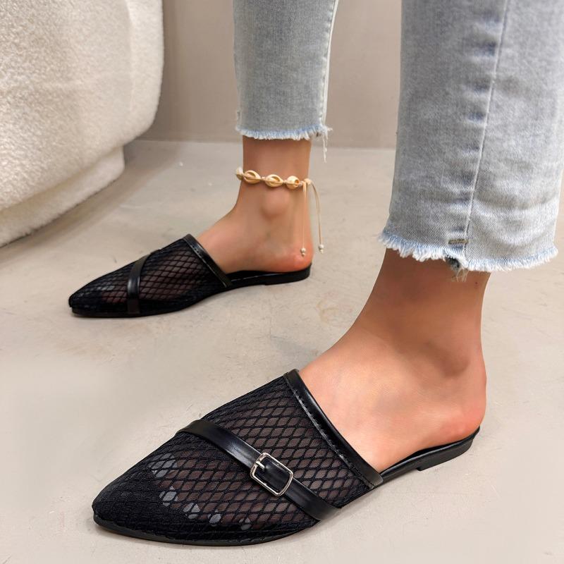 Мода 2025 Лето Горячая Распродажа Сетчатые Женские Тапочки с Закрытым Носком Заостренный Носок Пряжка Дышащие Сандалии для Улицы Большой Размер Повседневные Тапочки 43 чёрный