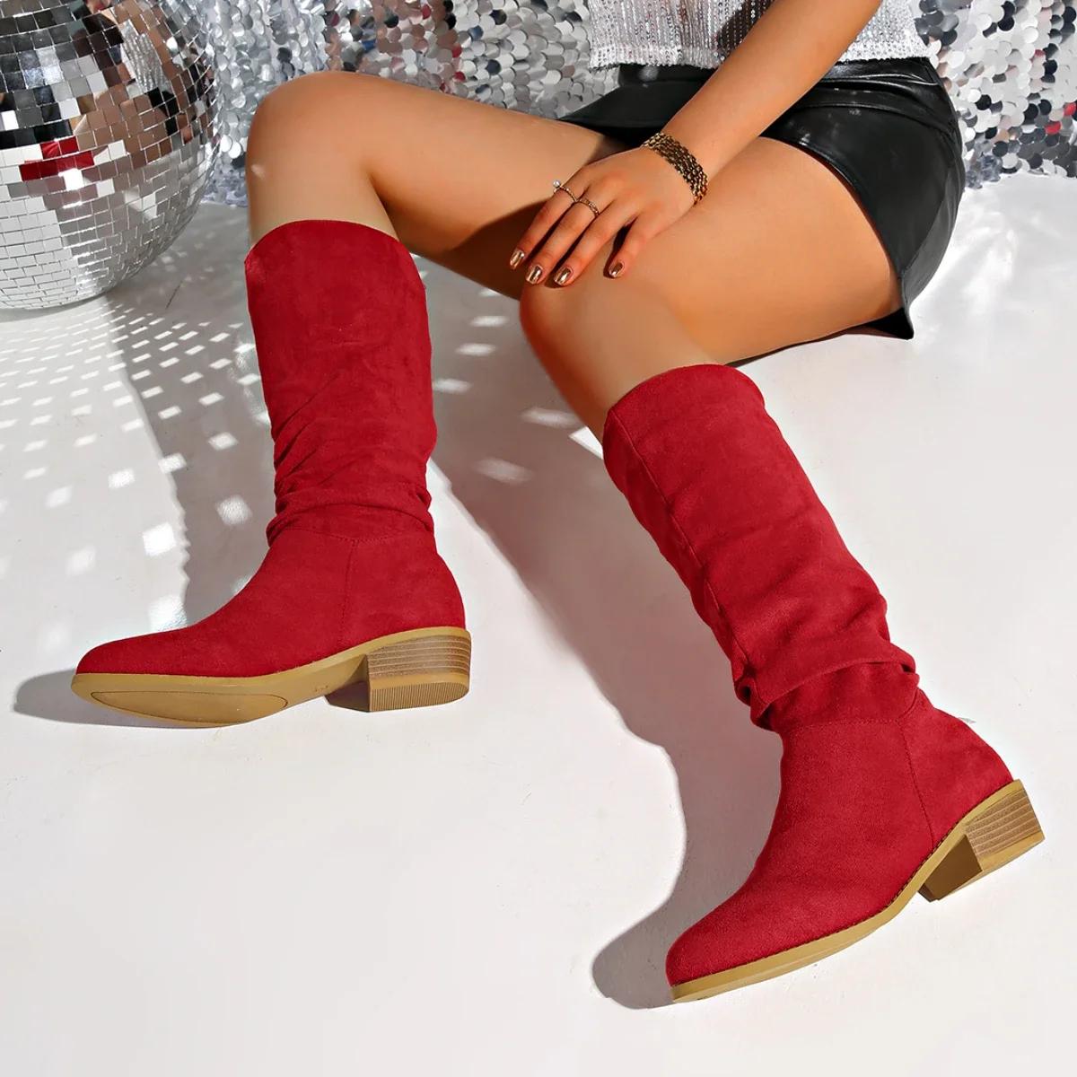 Мода 2025 Новая мода Осень Женские Универсальные Ботинки Европейский и Американский Модный Тренд Замшевые Ботинки Внешняя Торговля Большие Размеры Женские 43 красный