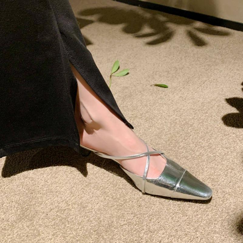 Мода 2025 Новые Роскошные Тапочки Туфли на Высоком Каблуке Сандалии Женская Обувь Острый Носок Летний Тренд Платье Вечеринка Сексуальные Женские Туфли-Лодочки Сандалии 39 серебряный