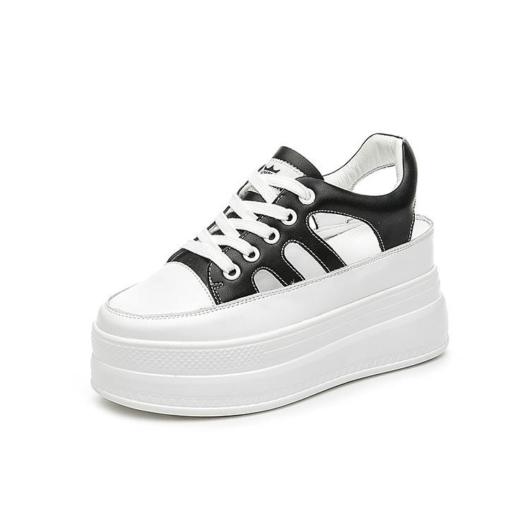 Мода 9см Полые Полностью Коровья Натуральная Кожа Женская Летняя Обувь Кроссовки на Платформе Клиновидный Скрытый Каблук Женские Летние Сандалии Платформа 39 чёрный