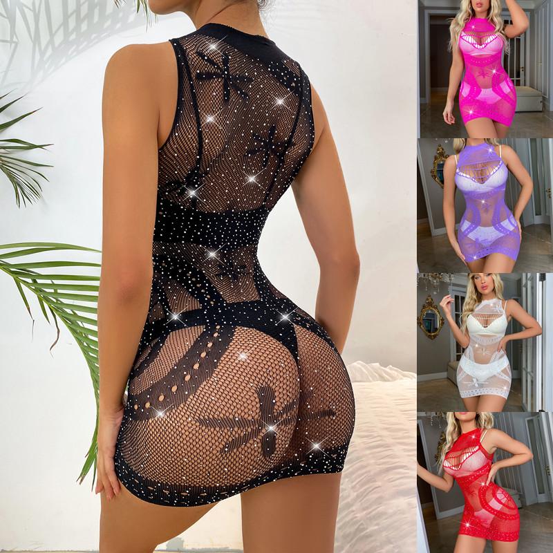 Мода Hot Drill Сексуальное белье Женское яркое рыболовное сетчатое плотное боди Нижнее белье