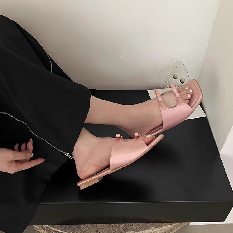 Модельер Летние женские тапочки Модные женские туфли-бабочки с открытым носком на плоской подошве Шлепанцы Повседневная пляжная обувь Сандалии
