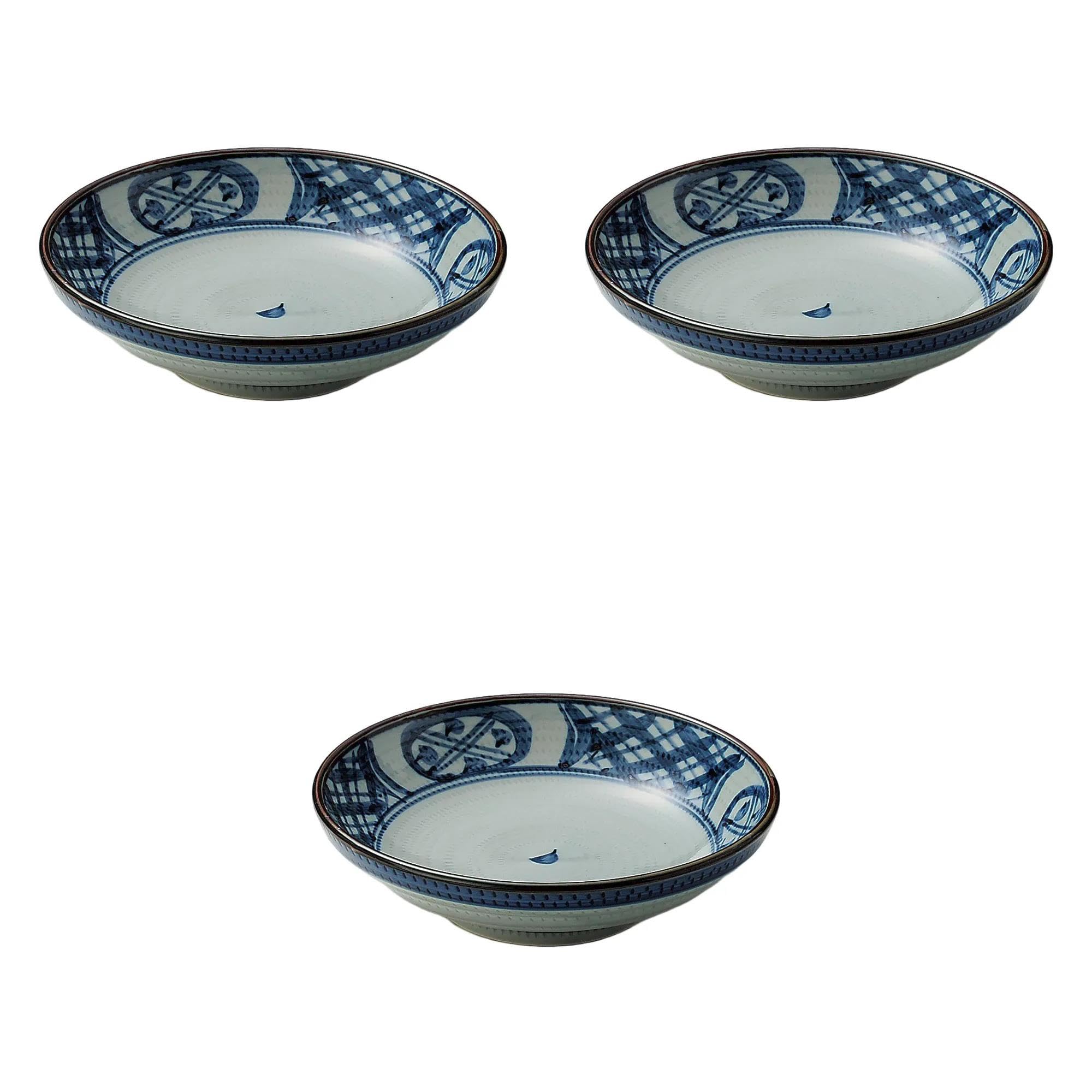![Set of 3 round pattern noodle plates x Noodle plates Setomonohonpo Old-dyed 7.5-inch [23.4 6.5 cm]