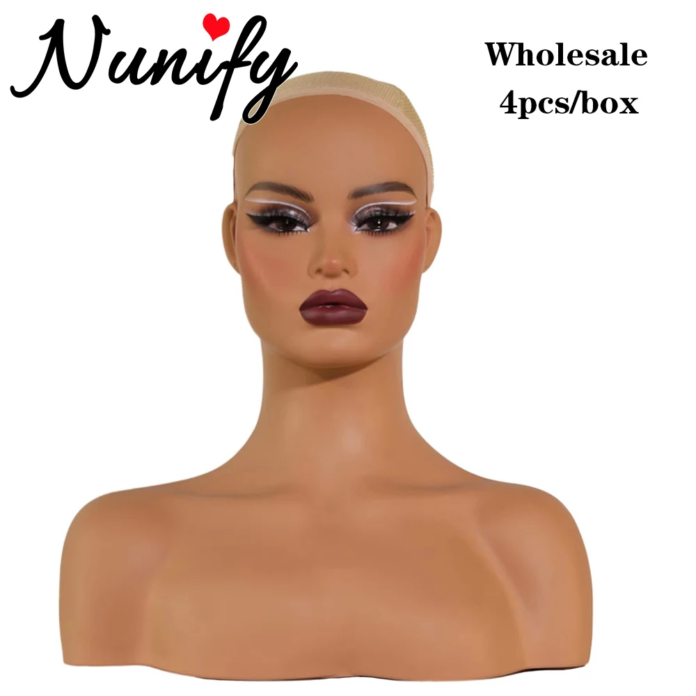 Модель манекена Nunify с шапочкой для парика для макияжа, ювелирная шляпа, держатель для дисплея, темная кожа, парик, тренировочная голова, реалистичная голова манекена