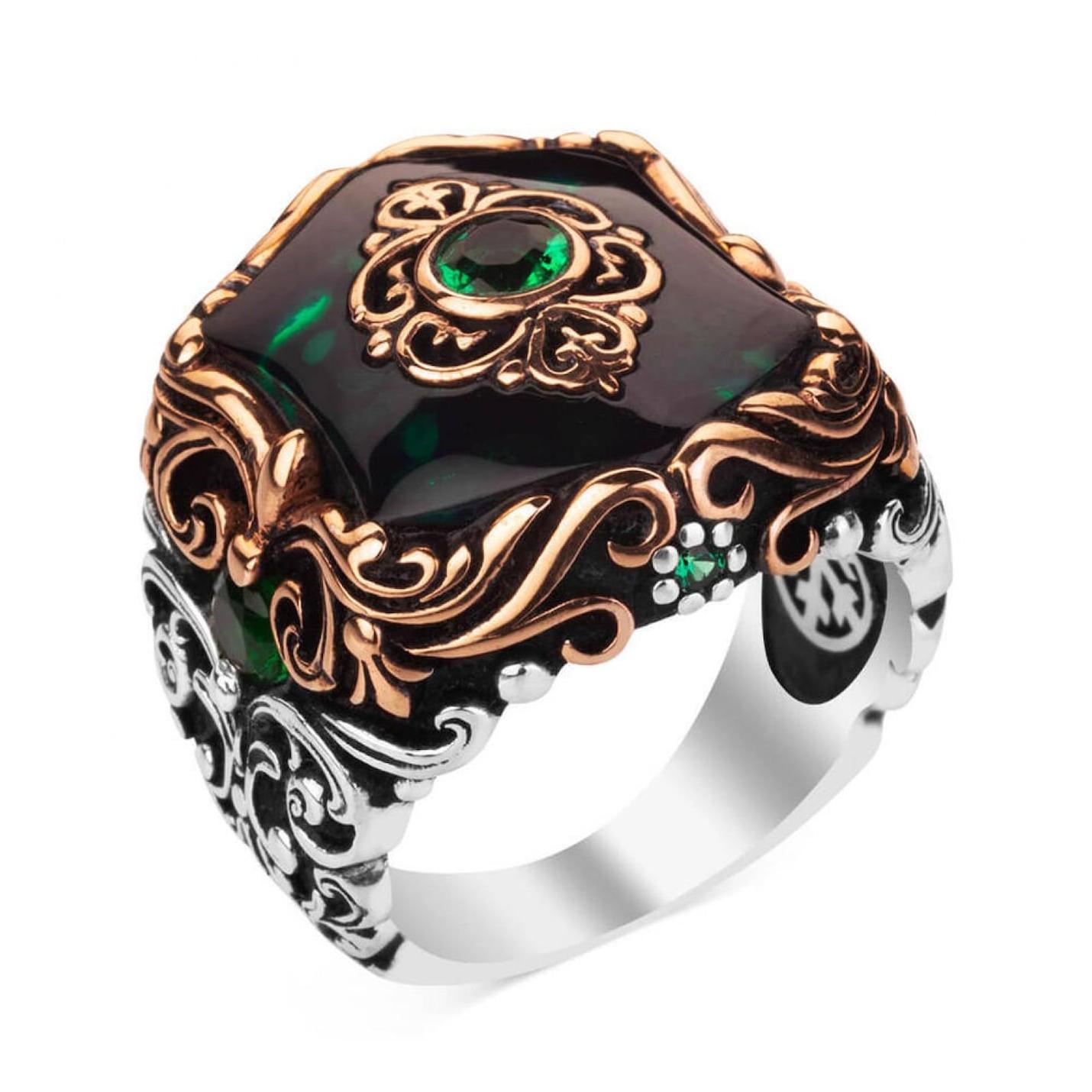 Модель плитки Циркон Зеленый камень Серебряное мужское кольцо