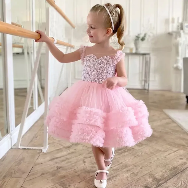 Модель 2024, платья для девочек, цельнокроеное платье для официальных мероприятий, Детские пышные бальные платья принцессы с бисером для выпускного вечера