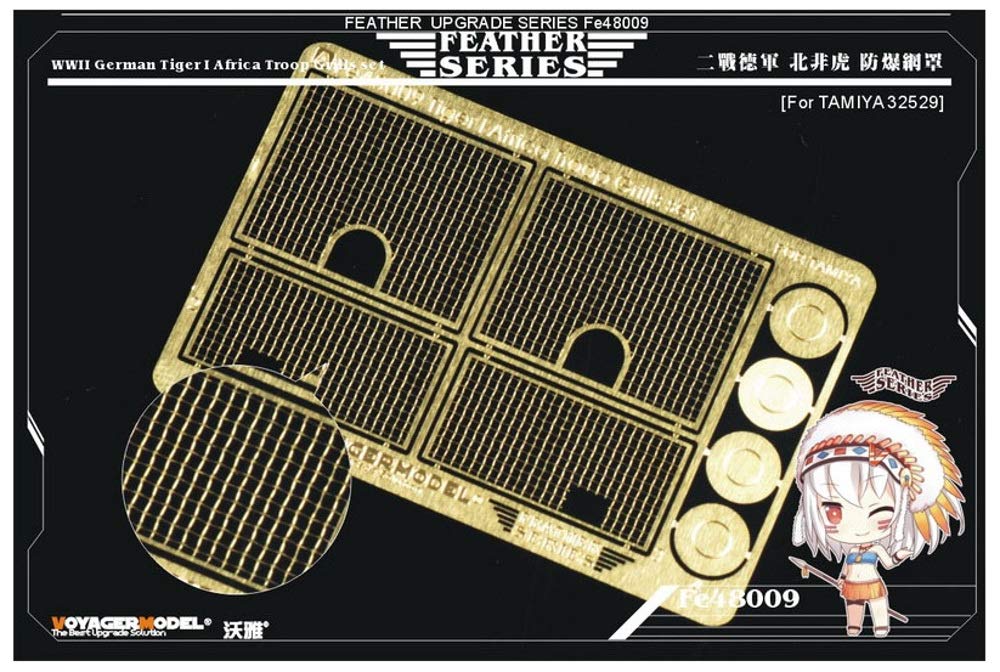 Модель Voyager, немецкая армия, Вторая мировая война, Tiger 1, очень ранняя африканская спецификация, набор решеток двигателя, пластиковые детали для модели Tamiya FE48009 1/48 (для 32529)