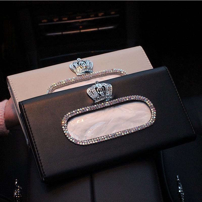Модная Корона с кристаллами, автомобильная коробка для салфеток, солнцезащитный козырек, кожаная сумка для авто, солнцезащитный козырек, подвесной держатель, чехол, салфетка для автомобиля