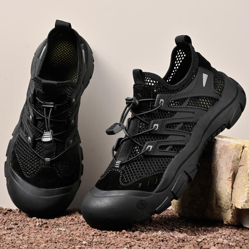 Модная Новая Мужская Обувь Сетка Мужская Уличная Обувь На Плоской Подошве Повседневные Уличные Кроссовки Летняя Мужская Легкая Обувь для Ходьбы Слипоны Мужские Роскошные Сандалии 46 чёрный