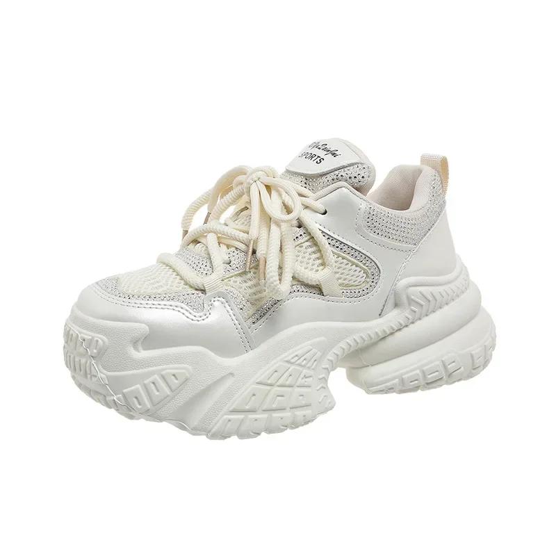 Модная Новая Обувь Женская Осень На Шнуровке Ретро Толстая Подошва Увеличивающая Рост Универсальная Женская Обувь Летняя Дышащая Кожаная Спортивная Обувь 35 бежевый