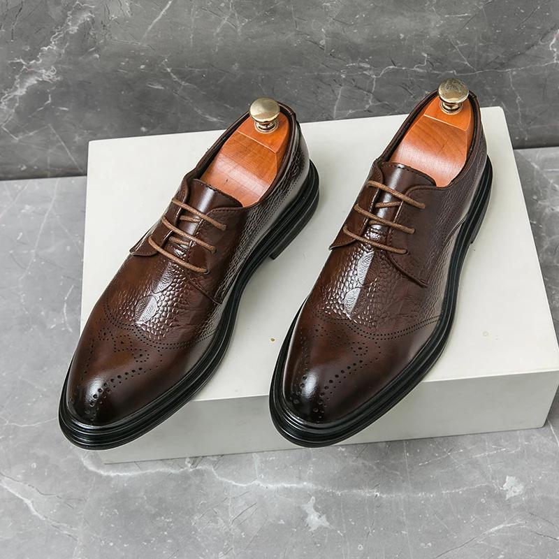 Модная Новая Черная Мужская Обувь Дерби Коричневый Круглый Носок На Шнуровке Вечеринка Мужская Формальная Обувь Искусственная Кожа Размер 38-46 Мужская Обувь для Платья 46 коричневый