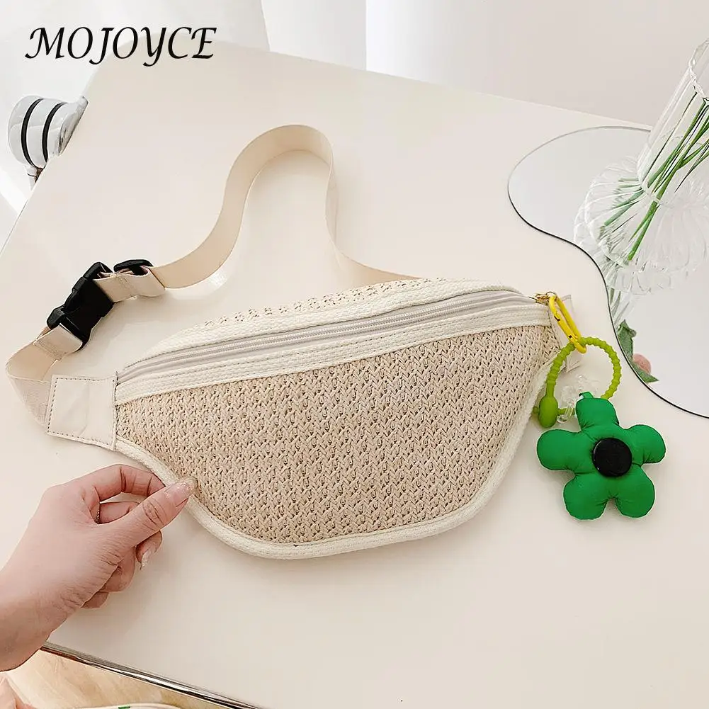 Модная Повседневная Соломенная поясная сумка для женщин, нагрудной мешок, плетеная Летняя Пляжная дорожная Сумочка для телефона, клатч на р...
