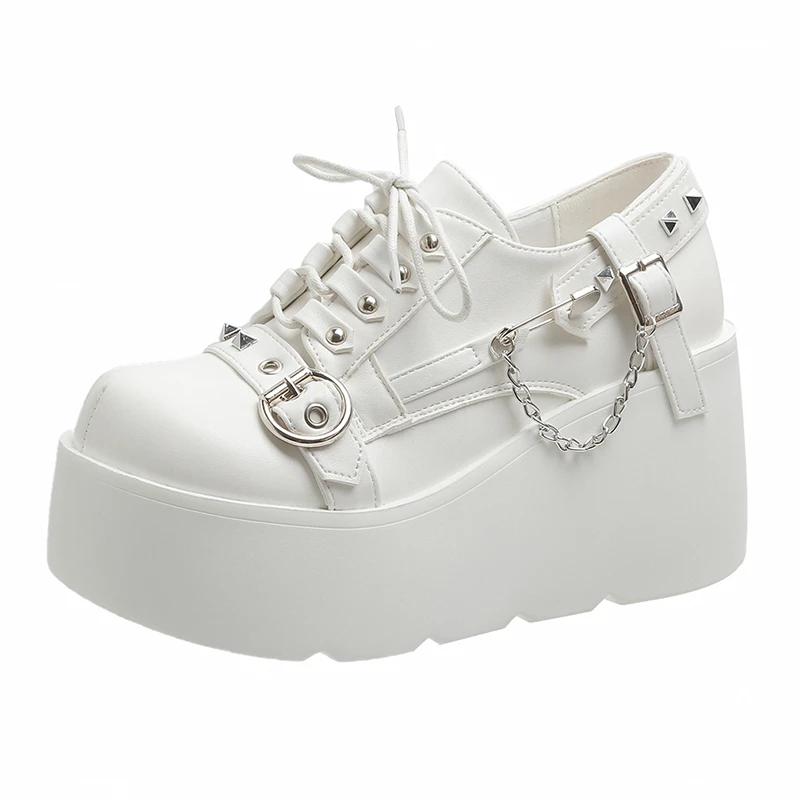 Модная Ретро Рок Обувь Ботинки Для Женщин Новая Темная Панк Кожаная Обувь Металлическая Нишевая Низкий Верх Обувь на Платформе Для Женщин 8,5 СМ Толстая Подошва 35 белый