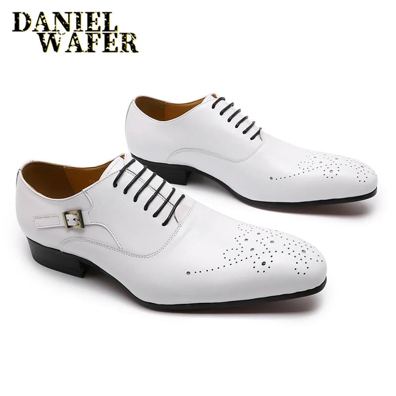 Модная Роскошная Мужская Кожаная Обувь Броги Стильный Заостренный Носок На Шнуровке Формальная Офисная Свадебная Социальная Удобная Мужская Брендовая Обувь 46 белый