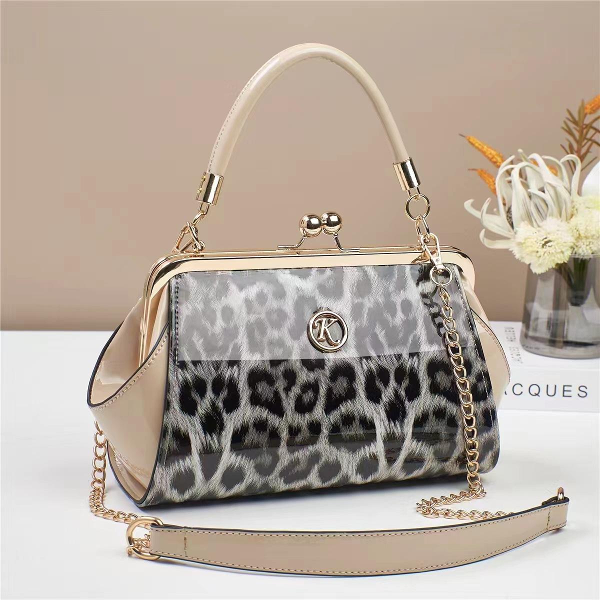 Модная блестящая кожаная женская сумка с текстурой леопардового цвета, гладкая сумка через плечо, корейская версия, женская банкетная сумка с цепочкой