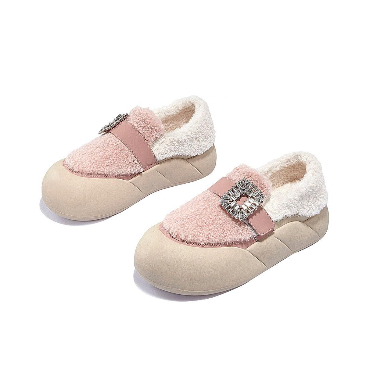 Модная брендовая женская обувь 2024 года, зимняя мода, плюшевые туфли, повышенная плюшевая хлопковая обувь, лучшие ботильоны с мягкой подошвой, женская повседневная спортивная обувь 36 розовый
