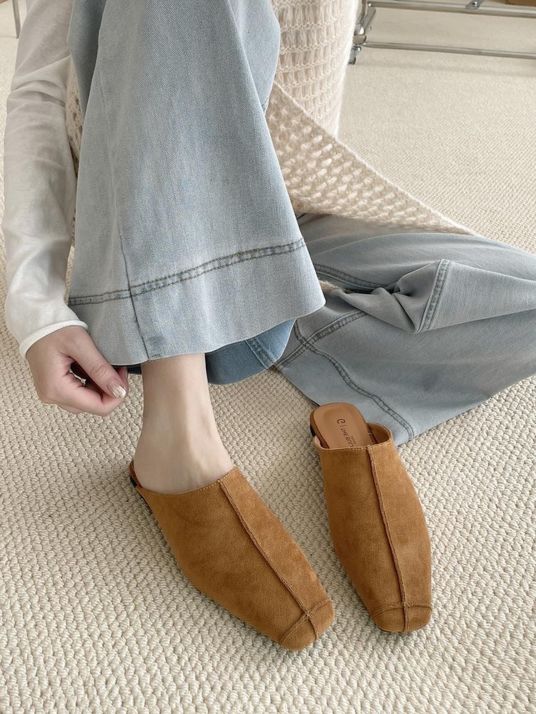 Модная верхняя одежда Мюли с квадратным носком Повседневная обувь для женщин Ретро балетки Слипоны Французский стиль полутапочки Комфортные шлепанцы Мягкая стелька Замша 35