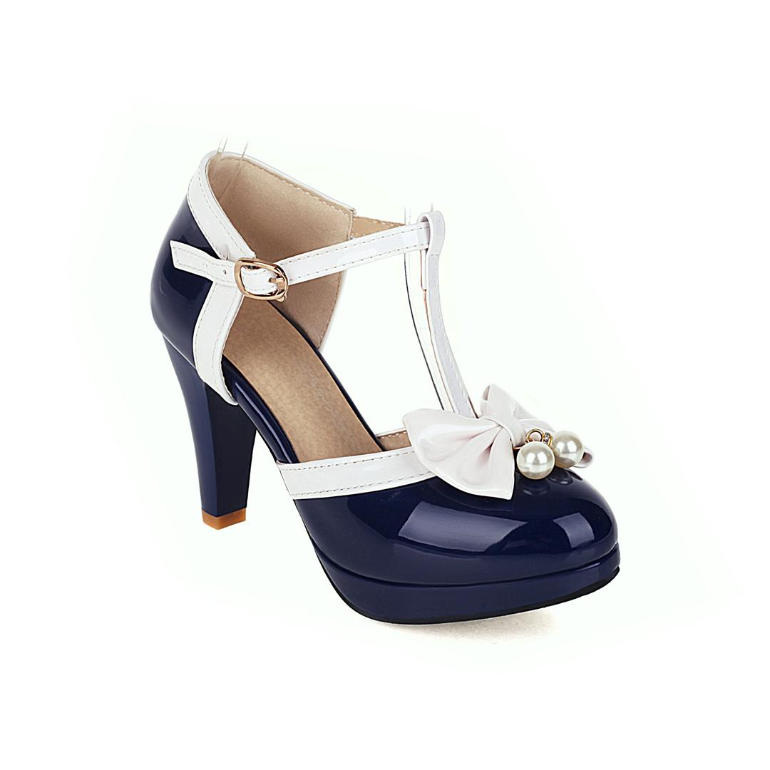 Модная весенняя обувь Женские туфли-лодочки Ремешок на щиколотке Бант Свадебная обувь для вечеринки Обувь на платформе Женская обувь Высокие каблуки Женская обувь Большой размер 32-43 4.5 синий