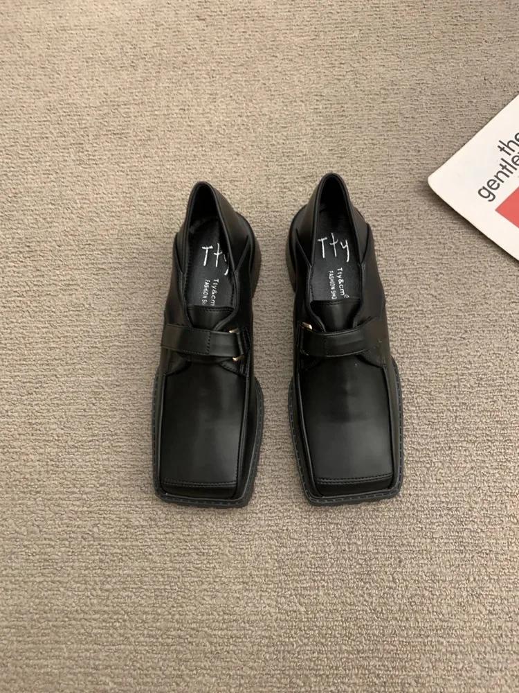 Модная винтажная коричневая женская обувь Кик Сэддлс Британский стиль Плоский каблук Весна Лето Обувь JK Маленькая кожаная 39 чёрный