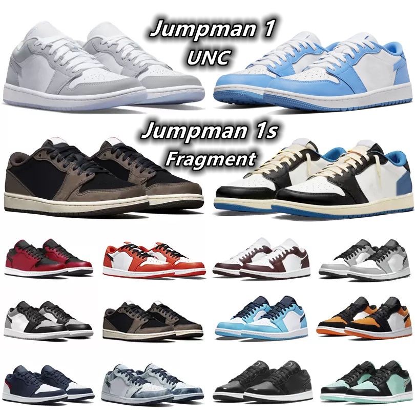 Jumpman 1 low 1s mens Basketball Shoes Sneakers True Blue Fragment White Camo Wolf Grey Dark Mocha Paint Drip UNC Royal Chicago Shadow men women trainer sports shoe, Color#1