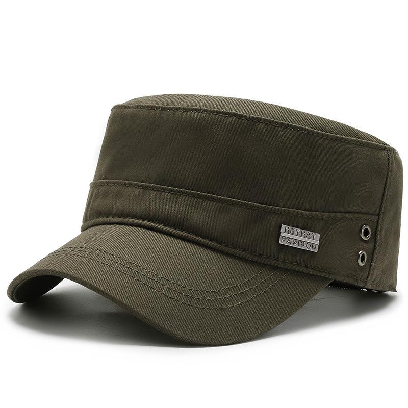 Модная военная шляпа Мужская шляпа Тень Солнцезащитный крем Героическая высокая и прямая военная шляпа с плоским верхом Хлопковая комфортная атмосфера Спортивная шляпа Adjustable армия зеленый