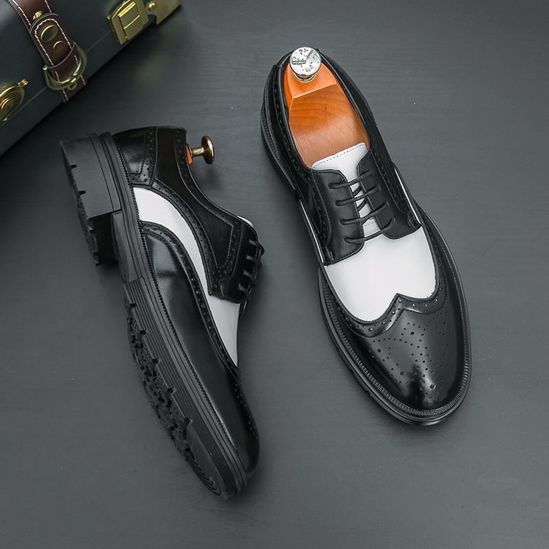Модная деловая мужская обувь Брок из кожи, британская шнуровка, деловая офисная брендовая кожаная обувь, американская социальная кожаная обувь, размеры 38-46 46 черный белый