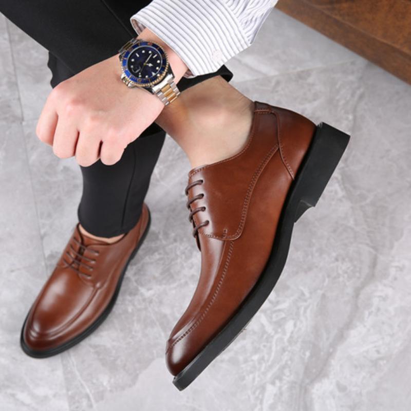 Модная деловая формальная кожаная обувь с маленьким круглым носком, повседневная мужская обувь на шнуровке, свадебная обувь, ретро-дерби 38 коричневый