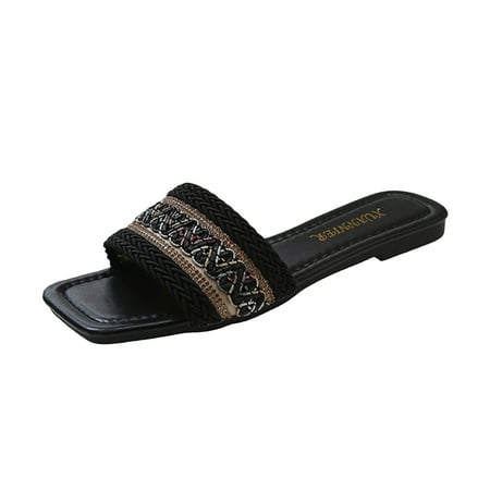 YanHoo Boho Slide Sandals for Women Girls Dressy Low Wedge Sandal Casual Open Toe Flat Sandals Summer Beach Slip on Sandals Platform Sandals