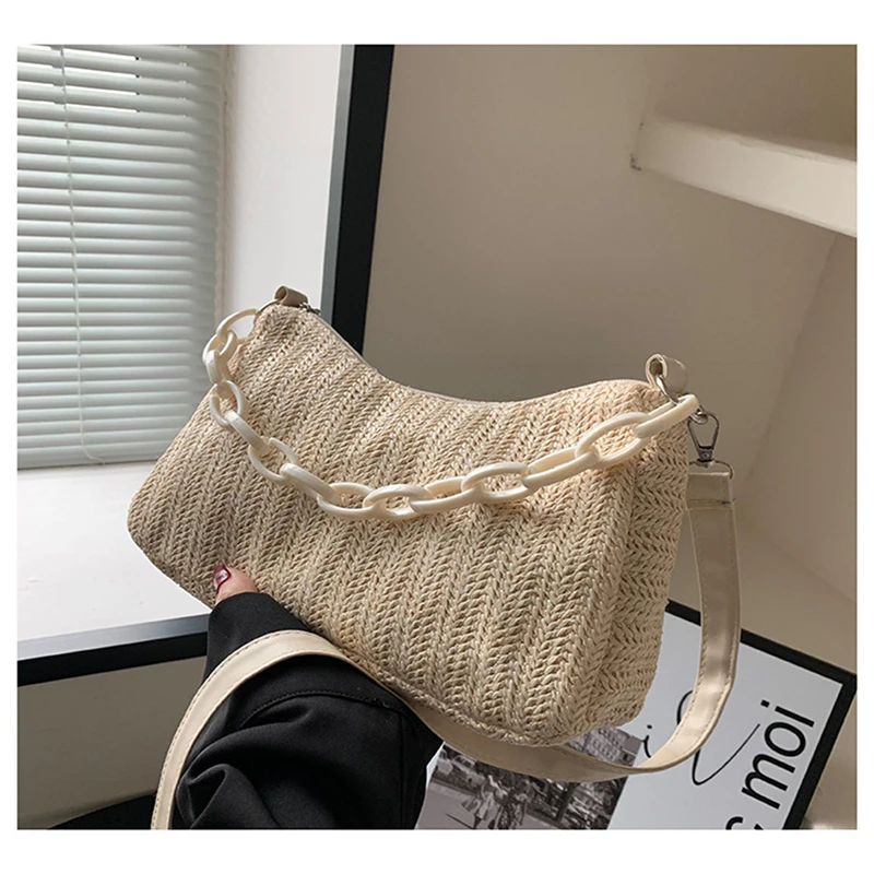 Модная женская Соломенная плетеная сумка-мессенджер через плечо, повседневная женская летняя пляжная маленькая сумочка на цепочке для отпуска, кошелек